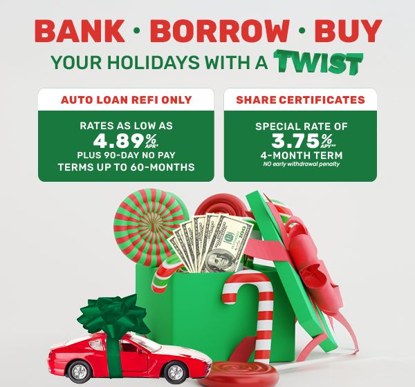 Certificate Special valid from 12/1/2025 through 12/31/2025. APY=Annual Percentage Yield. Please see Truth-In-Savings: Share Certificates for more information. Credit Union promotional rates, terms, and conditions are subject to change at any time without notice.